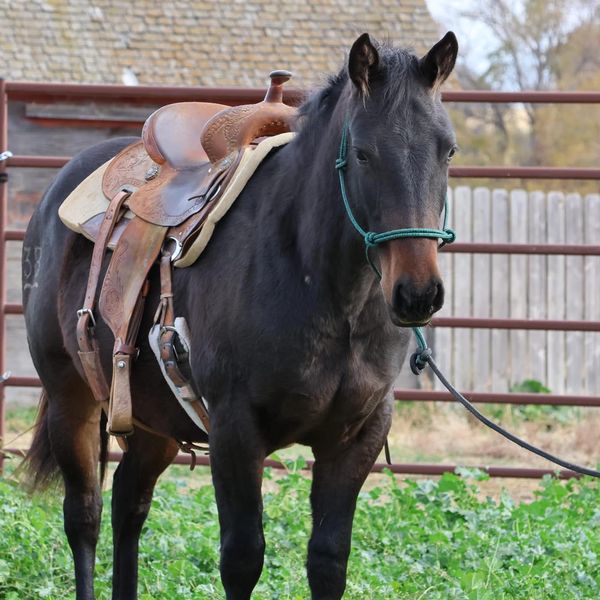 "Rosie" is the epitome of what a foundation bred horse should look and act like. She is stout, big boned, gritty but still light on her feet and agile. She has that "born broke" personality and is proving to be very willing under saddle. She is 100% foundation, no rounding and has a pedigree that should set her up for success in any discipline.